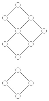 The graph of a finite distributive lattice has an edge between vertices a and b whenever I(a,b) = {a,b}. For every two vertices a and b of this graph, the interval I(a,b) defined in lattice-theoretic terms above consists of the vertices on shortest paths from a to b, and thus coincides with the graph-theoretic intervals defined earlier. For every three lattice elements a, b, and c, m(a,b,c) is the unique intersection of the three intervals I(a,b), I(a,c), and I(b,c).[12] Therefore, the graph of an arbitrary finite distributive lattice is a median graph. Conversely, if a median graph G contains two vertices 0 and 1 such that every other vertex lies on a shortest path between the two (equivalently, m(0,a,1) = a for all a), then we may define a distributive lattice in which a ∧ b = m(a,0,b) and a ∨ b = m(a,1,b), and G will be the graph of this lattice.[13]