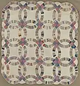 The pattern and modern name have propagated into wide range of usage in popular culture, in fashion, jewelry, tattoos and decorative products. The pattern in quilting has been called diamond wedding ring or triangle wedding ring to contrast it from the square pattern. Besides an occasional use in fashion,[14] it is also used in the decorative arts. For example, the album Sempiternal (2013) by Bring Me the Horizon uses the 61 overlapping circles grid as the main feature of its album cover,[15] whereas the album A Head Full of Dreams (2015) by Coldplay features the 19 overlapping circles grid as the central part of its album cover. Teaser posters illustrating the cover art to A Head Full of Dreams were widely displayed on the London Underground in the last week of October 2015.[16]