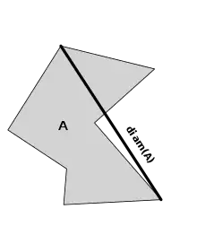 A metric space M is bounded if there is an r such that no pair of points in M is more than distance r apart.[lower-alpha 2] The least such r is called the diameter of M.