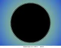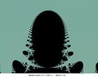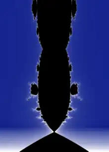 ![]() Multibrot rendered with real value along horizontal axis and exponent along vertical axis, imaginary value fixed at zero |