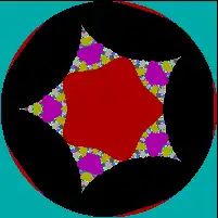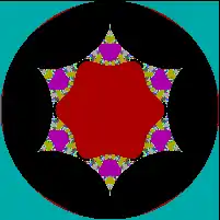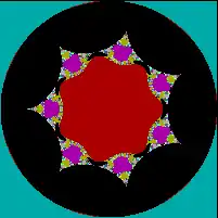 When d is negative the set appears to surround but does not include the origin, However this is just an artifact of the fixed maximum radius allowed by the Escape Time algorithm, and is not a limit of the sets that actually have a shape in the middle with an no hole (You can see this by using the Lyapunov exponent [No hole because the origin diverges to undefined not infinity because the origin {0 or 0+0i} taken to a negative power becomes undefined]). There is interesting complex behaviour in the contours between the set and the origin, in a star-shaped area with (1 − d)-fold rotational symmetry. The sets appear to have a circular perimeter, however this is an artifact of the fixed maximum radius allowed by the Escape Time algorithm, and is not a limit of the sets that actually extend in all directions to infinity.