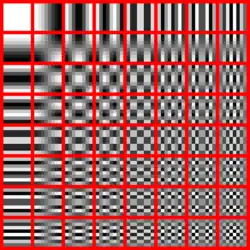 The DCT is used in JPEG image compression, MJPEG, MPEG, DV, Daala, and Theora video compression. There, the two-dimensional DCT-II of NxN blocks are computed and the results are quantized and entropy coded. In this case, N is typically 8 and the DCT-II formula is applied to each row and column of the block. The result is an 8x8 transform coefficient array in which the: (0,0) element (top-left) is the DC (zero-frequency) component and entries with increasing vertical and horizontal index values represent higher vertical and horizontal spatial frequencies, as shown in the picture on the right.