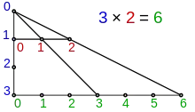 - Generalization to fractions is by multiplying the numerators and denominators, respectively: . This gives the area of a rectangle high and wide, and is the same as the number of things in an array when the rational numbers happen to be whole numbers.[25]