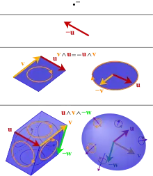 - an orientation (out of two), determined by the order in which the originating vectors are multiplied.