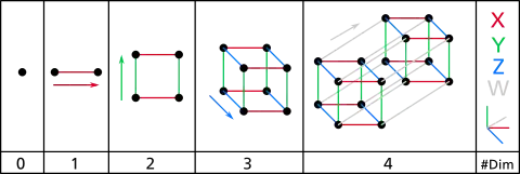 An inductive dimension may be defined inductively as follows. Consider a discrete set of points (such as a finite collection of points) to be 0-dimensional. By dragging a 0-dimensional object in some direction, one obtains a 1-dimensional object. By dragging a 1-dimensional object in a new direction, one obtains a 2-dimensional object. In general one obtains an (n + 1)-dimensional object by dragging an n-dimensional object in a new direction. The inductive dimension of a topological space may refer to the small inductive dimension or the large inductive dimension, and is based on the analogy that, in the case of metric spaces, (n + 1)-dimensional balls have n-dimensional boundaries, permitting an inductive definition based on the dimension of the boundaries of open sets. Moreover, the boundary of a discrete set of points is the empty set, and therefore the empty set can be taken to have dimension -1.[5]