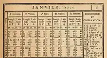 Afterwards, she worked on Éphémerides, annual guides for astronomers and navigators. She calculated the position of Saturn for each day of the year from 1775 to 1784 for the seventh volume,[8] published in 1774, and she calculated on her own the daily positions of the Sun, the Moon and the planets for the eighth volume (1785-1792, published 1784).[2][3][9][4]