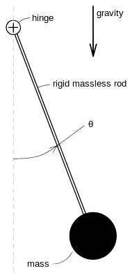A classic, extensively studied nonlinear problem is the dynamics of a frictionless pendulum under the influence of gravity. Using Lagrangian mechanics, it may be shown[14] that the motion of a pendulum can be described by the dimensionless nonlinear equation