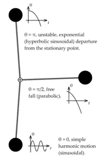 since for . This is a simple harmonic oscillator corresponding to oscillations of the pendulum near the bottom of its path. Another linearization would be at , corresponding to the pendulum being straight up: