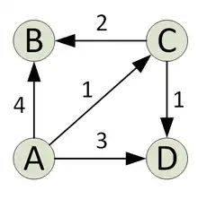 Let be a directed Graph with the set of nodes and the set of edges . Each edge has a weight assigned. The goal of the all-pair-shortest-paths problem is to find the shortest path between all pairs of nodes of the graph. For this path to be unique it is required that the graph does not contain cycles with a negative weight.