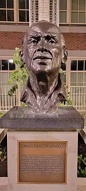 The Dirac-Hellman Award at Florida State University was endowed by Bruce P. Hellman in 1997 to reward outstanding work in theoretical physics by FSU researchers.[156] The Paul A.M. Dirac Science Library at Florida State University, which Manci opened in December 1989,[157] is named in his honour, and his papers are held there.[158] Outside is a statue of him by Gabriella Bollobás.[159] The street on which the National High Magnetic Field Laboratory in Innovation Park of Tallahassee, Florida, is located is named Paul Dirac Drive. As well as in his hometown of Bristol, there is also a road named after him, Dirac Place, in Didcot, Oxfordshire.[160] The Dirac-Higgs Science Centre in Bristol is also named in his honour.[161]
