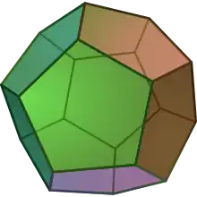 - Dodecahedron, a polyhedron whose regular form is composed of 12 pentagonal faces