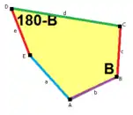 In geometry, a pentagon (from Greek πέντε (pente) 'five', and γωνία (gonia) 'angle'[1]) is any five-sided polygon or 5-gon. The sum of the internal angles in a simple pentagon is 540°.
