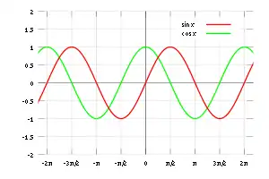 A periodic function or cyclic function, also called a periodic waveform (or simply periodic wave), is a function that repeats its values at regular intervals or periods. The repeatable part of the function or waveform is called a cycle.[1] For example, the trigonometric functions, which repeat at intervals of radians, are periodic functions. Periodic functions are used throughout science to describe oscillations, waves, and other phenomena that exhibit periodicity. Any function that is not periodic is called aperiodic.