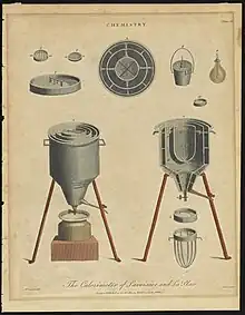 From 1780 to 1784, Laplace and French chemist Antoine Lavoisier collaborated on several experimental investigations, designing their own equipment for the task.[12] In 1783 they published their joint paper, Memoir on Heat, in which they discussed the kinetic theory of molecular motion.[13] In their experiments they measured the specific heat of various bodies, and the expansion of metals with increasing temperature. They also measured the boiling points of ethanol and ether under pressure.