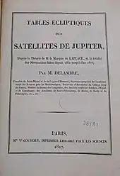Further developments of these theorems on planetary motion were given in his two memoirs of 1788 and 1789, but with the aid of Laplace's discoveries, the tables of the motions of Jupiter and Saturn could at last be made much more accurate. It was on the basis of Laplace's theory that Delambre computed his astronomical tables.[11]