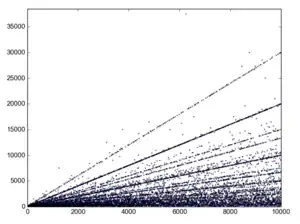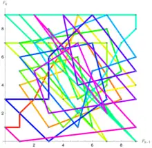 - Sloane, N. J. A. (ed.). "Sequence A001175: graph". The On-Line Encyclopedia of Integer Sequences. OEIS Foundation. Graph of the cycles modulo 1 to 24. Each row of the image represents a different modulo base n, from 1 at the bottom to 24 at the top. The columns represent the Fibonacci numbers mod n, from F(0) mod n at the left to F(59) mod n on the right. In each cell, the brightness indicates the value of the residual, from dark for 0 to near-white for n−1. Blue squares on the left represent the first period; the number of blue squares is the Pisano number.