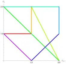 | k | F(k) | π(F(k)) | first half of cycle (for even k ≥ 4) or first quarter of cycle (for odd k ≥ 4) or all cycle (for k ≤ 3) (with selected second halves or second quarters) |