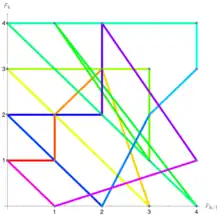 | 11 | 89 | 44 | 0, 1, 1, 2, 3, 5, 8, 13, 21, 34, 55, (0, 55, 55, 21, 76, 8, 84, 3, 87, 1, 88) |