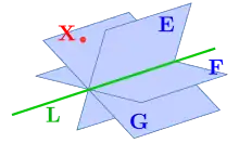 - is the point of intersection of the line and the plane ('Meet')