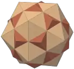 The coordinates of the icosahedron are related to two alternated sets of coordinates of a nonuniform truncated octahedron, t{3,4} or ![]()