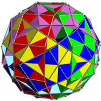 In 4-dimensions, there are a large number of regular compounds of regular polytopes. Coxeter lists a few of these in his book Regular Polytopes.[4] McMullen added six in his paper New Regular Compounds of 4-Polytopes.[5]