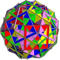 In geometry, a polyhedral compound is a figure that is composed of several polyhedra sharing a common centre. They are the three-dimensional analogs of polygonal compounds such as the hexagram.