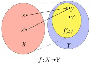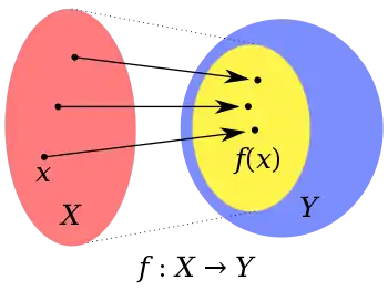If is a member of then the image of under denoted is the value of when applied to is alternatively known as the output of for argument