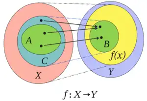 More generally, evaluating at each element of a given subset of its domain produces a set, called the "image of under (or through) ". Similarly, the inverse image (or preimage) of a given subset of the codomain is the set of all elements of that map to a member of
