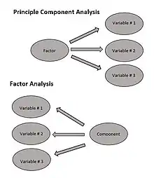 For either objective, it can be shown that the principal components are eigenvectors of the data's covariance matrix. Thus, the principal components are often computed by eigendecomposition of the data covariance matrix or singular value decomposition of the data matrix. PCA is the simplest of the true eigenvector-based multivariate analyses and is closely related to factor analysis. Factor analysis typically incorporates more domain-specific assumptions about the underlying structure and solves eigenvectors of a slightly different matrix. PCA is also related to canonical correlation analysis (CCA). CCA defines coordinate systems that optimally describe the cross-covariance between two datasets while PCA defines a new orthogonal coordinate system that optimally describes variance in a single dataset.[2][3][4][5] Robust and L1-norm-based variants of standard PCA have also been proposed.[6][7][8][5]