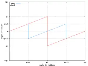 For example, many computing systems include an atan2(y, x) function. The value of atan2(imaginary_part(z), real_part(z)) will be in the interval In comparison, atan y/x is typically in