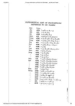 - Whitehead, Alfred North; Russell, Bertrand (1910). Principia Mathematica. Vol. 1 (1st ed.). Cambridge: Cambridge University Press. hdl:2027/miun.aat3201.0001.001. JFM 41.0083.02. LCCN a11002789.