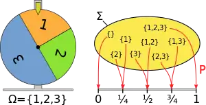 For example, given three elements 1, 2 and 3 with probabilities and the value assigned to is as in the diagram on the right.