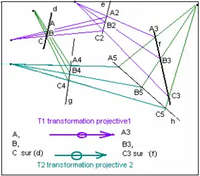A spatial perspectivity of a projective configuration in one plane yields such a configuration in another, and this applies to the configuration of the complete quadrangle. Thus harmonic quadruples are preserved by perspectivity. If one perspectivity follows another the configurations follow along. The composition of two perspectivities is no longer a perspectivity, but a projectivity.
