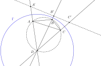 Ptolemy's theorem gives the product of the diagonals (of a cyclic quadrilateral) knowing the sides, the following theorem yields the same for the ratio of the diagonals.[13]