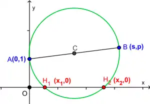 The Carlyle circle, named after Thomas Carlyle, has the property that the solutions of the quadratic equation are the horizontal coordinates of the intersections of the circle with the horizontal axis.[40] Carlyle circles have been used to develop ruler-and-compass constructions of regular polygons.