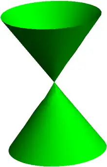 In mathematics, a quadric or quadric hypersurface is the subspace of N-dimensional space defined by a polynomial equation of degree 2 over a field. Quadrics are fundamental examples in algebraic geometry. The theory is simplified by working in projective space rather than affine space. An example is the quadric surface