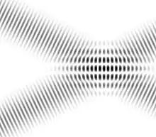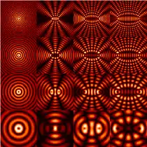 A point source produces a spherical wave. If the light from two point sources overlaps, the interference pattern maps out the way in which the phase difference between the two waves varies in space. This depends on the wavelength and on the separation of the point sources. The figure to the right shows interference between two spherical waves. The wavelength increases from top to bottom, and the distance between the sources increases from left to right.