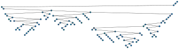 Devroye and Robson consider a related continuous-time random process in which each external node is eventually replaced by an internal node with two external children, at an exponentially distributed time after its first appearance as an external node. The number of external nodes in the tree, at any time, is modeled by a simple birth process or Yule process in which the members of a population give birth at a constant rate: giving birth to one child, in the Yule process, corresponds to being replaced by two children, in Devroye and Robson's model. If this process is stopped at any fixed time, the result is a binary tree of a random size (depending on the stopping time), distributed according to the random permutation model for that size. Devroye and Robson use this model as part of an algorithm to quickly generate trees in the random permutation model, described by their numbers of nodes at each depth rather than by their exact structure.[32] A discrete variant of this process starts with a tree consisting of a single external node, and repeatedly replaces a randomly-chosen external node by an internal node with two external children. Again, if this is stopped at a fixed time (with a fixed size), the resulting tree is distributed according to the random permutation model for that size.[1]