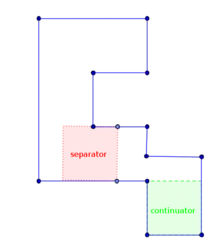 No square can be both a continuator and a separator. In general polygons, there may be squares that are neither continuators nor separators, but in simple polygons this cannot happen:[1]