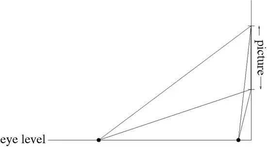 - α = the angle of elevation of the bottom of the painting, seen from the viewer's position;