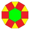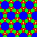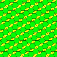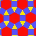 A regular hexagon can be extended into a regular dodecagon by adding alternating squares and equilateral triangles around it. This pattern repeats within the rhombitrihexagonal tiling.