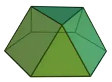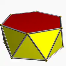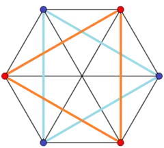 A regular skew hexagon is vertex-transitive with equal edge lengths. In three dimensions it will be a zig-zag skew hexagon and can be seen in the vertices and side edges of a triangular antiprism with the same D3d, [2+,6] symmetry, order 12.
