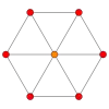 A truncated hexagon, t{6}, is a dodecagon, {12}, alternating two types (colors) of edges. An alternated hexagon, h{6}, is an equilateral triangle, {3}. A regular hexagon can be stellated with equilateral triangles on its edges, creating a hexagram. A regular hexagon can be dissected into six equilateral triangles by adding a center point. This pattern repeats within the regular triangular tiling.