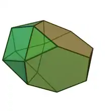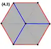 Coxeter states that every zonogon (a 2m-gon whose opposite sides are parallel and of equal length) can be dissected into 1⁄2m(m − 1) parallelograms.[5] In particular this is true for regular polygons with evenly many sides, in which case the parallelograms are all rhombi. This decomposition of a regular hexagon is based on a Petrie polygon projection of a cube, with 3 of 6 square faces. Other parallelogons and projective directions of the cube are dissected within rectangular cuboids.