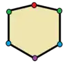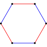 A regular hexagon has Schläfli symbol {6}[2] and can also be constructed as a truncated equilateral triangle, t{3}, which alternates two types of edges.