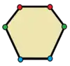 A regular hexagon can also be created as a truncated equilateral triangle, with Schläfli symbol t{3}. Seen with two types (colors) of edges, this form only has D3 symmetry.