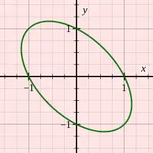 ![]() The representation of the relation Rel = { (x,y) ∈ R × R | x2 + xy + y2 = 1 } as a 2D-plot yields an ellipse. |