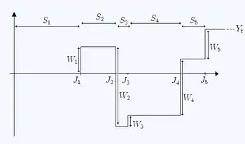 Sample evolution of a renewal-reward process with holding times Si, jump times Jn and rewards Wi