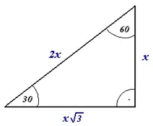 In diagrams, the fact that an angle is a right angle is usually expressed by adding a small right angle that forms a square with the angle in the diagram, as seen in the diagram of a right triangle (in British English, a right-angled triangle) to the right. The symbol for a measured angle, an arc, with a dot, is used in some European countries, including German-speaking countries and Poland, as an alternative symbol for a right angle.[6]