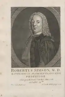 Robert Simson (14 October 1687 – 1 October 1768) was a Scottish mathematician and professor of mathematics at the University of Glasgow. The Simson line is named after him.[1]